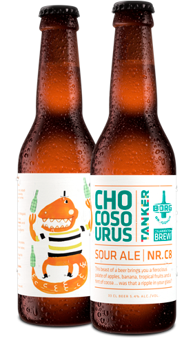 Chocosourus is aged in oak barrels adding smoothness to a fresh sour palate of apples, banana, tropical fruits and cocoa.