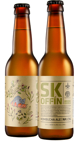 Our Skoffín is neither deadly nor canine nor a bogey that crawled out of a rooster’s egg. Through a mythical formula we crafted Skoffín in a sorcery of acid symphony combined with fermented kombucha tea, creating a refreshing natural fluid with a mild taste of wild arctic thyme. Sigrún Hlín Sigurðardóttir provided the graphic illustration of the Skoffín phenomenon.